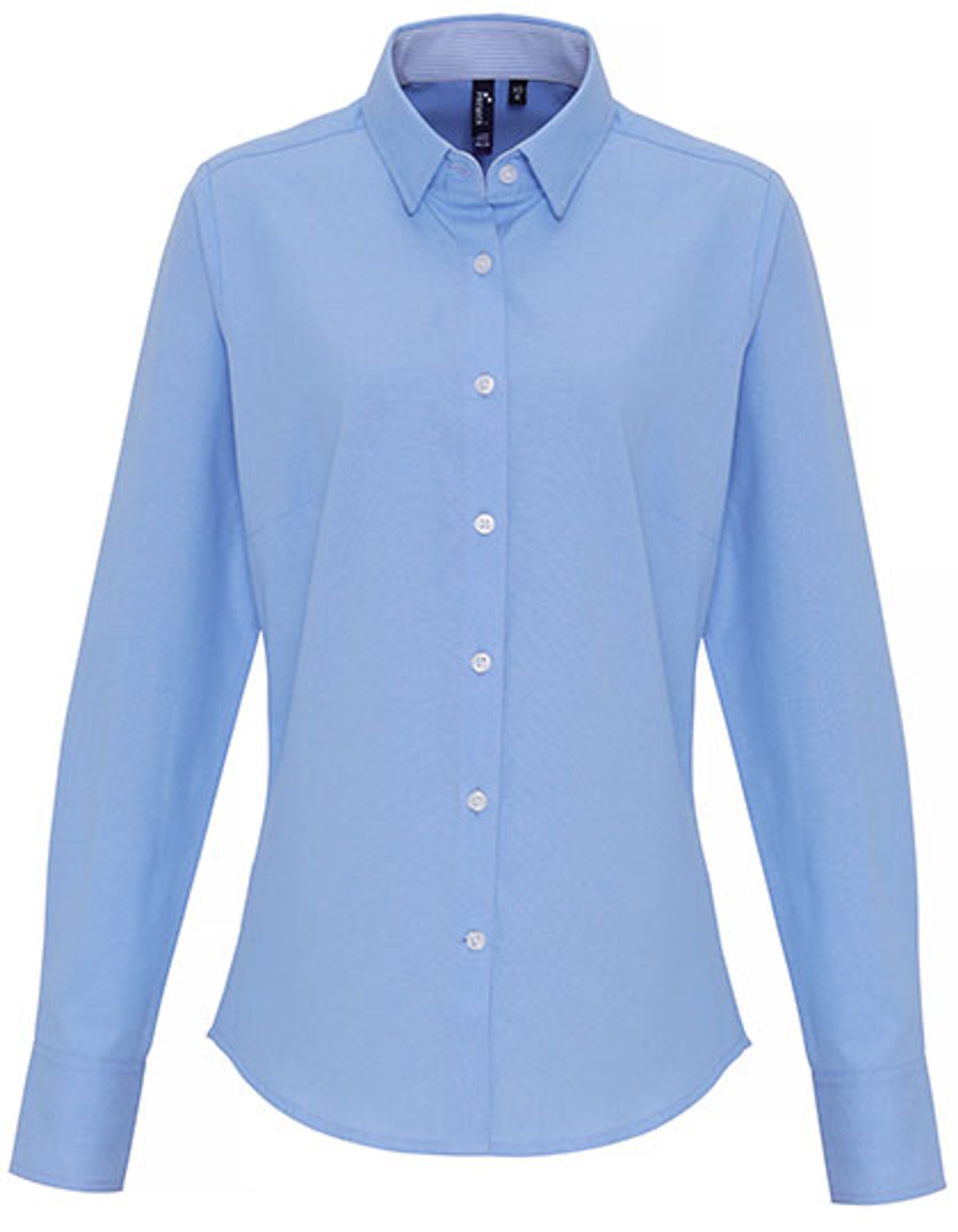 Col boutonné au-dessous | Couleur contrastante à l'intérieur du tour de cou et aux poignets | 2 boutons aux poignets et un bouton aux poignets | Ourlet courbé | Coton | Pinces poitrine et au dos pour une coupe plus féminine
