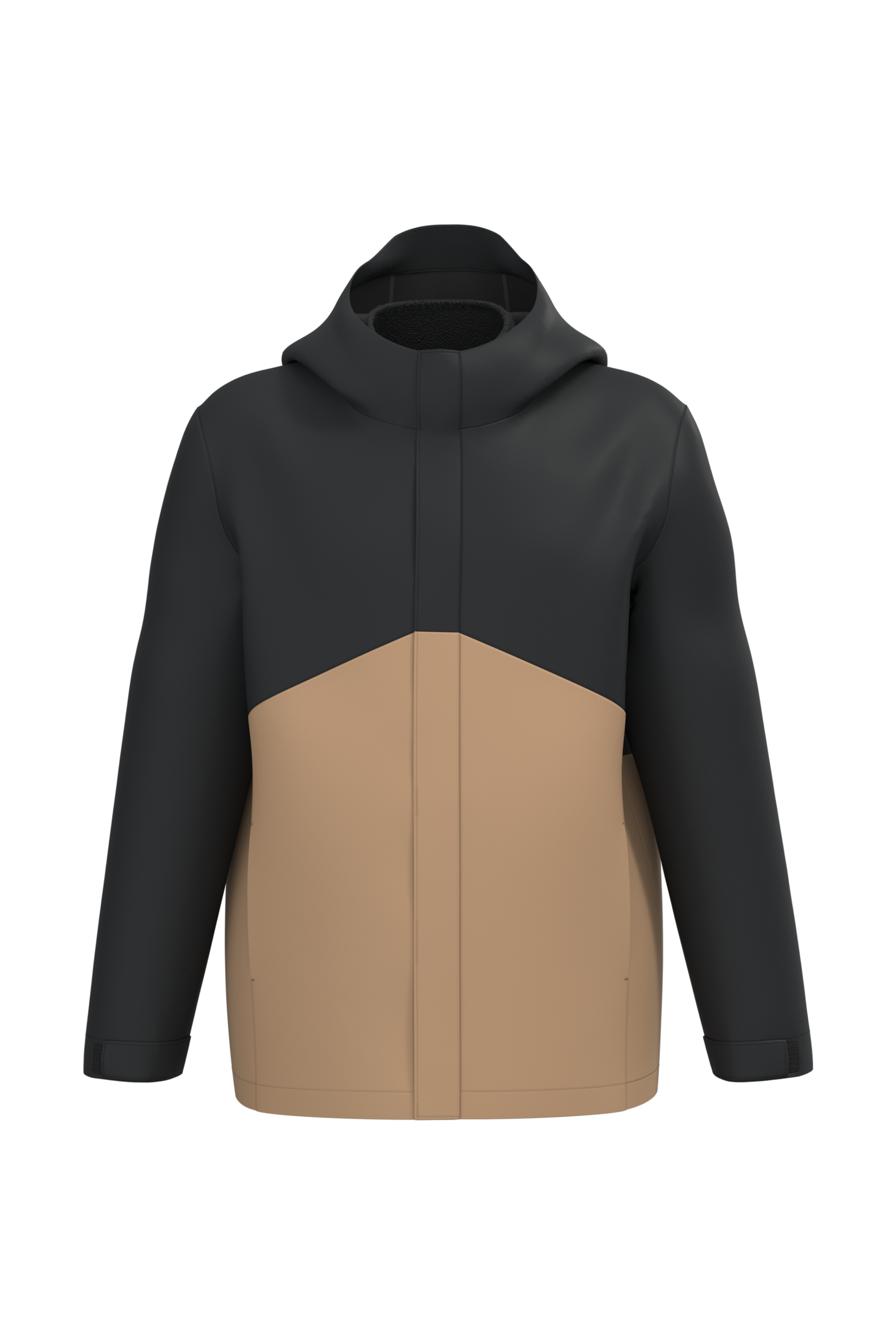 100% polyester 170g/m². Doublure : 100% polyester 210g/m². Tissu léger et respirant 3000 g/m² /24h et imperméable 4000 mm. Tissu avec membrane intérieure et coutures thermo soudées permettant au produit d'être imperméable. Coupe droite. Empiècement sur le devant et le dos ton sur ton pour la version Black et bicolore pour les versions Camel/Black et Navy/Dark Grey. Fermeture zippée invisible avec pattes auto-agrippante, zip inversé, double tire-zip métal. Doublure polaire amovible avec fermeture zippée. Deux poches latérales passepoilées extérieures zippées. Intérieur : une poche pour téléphone portable côté cœur et deux poches latérales zippées sur la doublure polaire. Capuche 3 panneaux avec visière, cordon de serrage et stoppeurs. Bas de manche réglable avec bande auto-agrippante. Bas de vêtement ajustable avec cordon de serrage et stoppeurs invisibles. Poids moyen : 1010g.