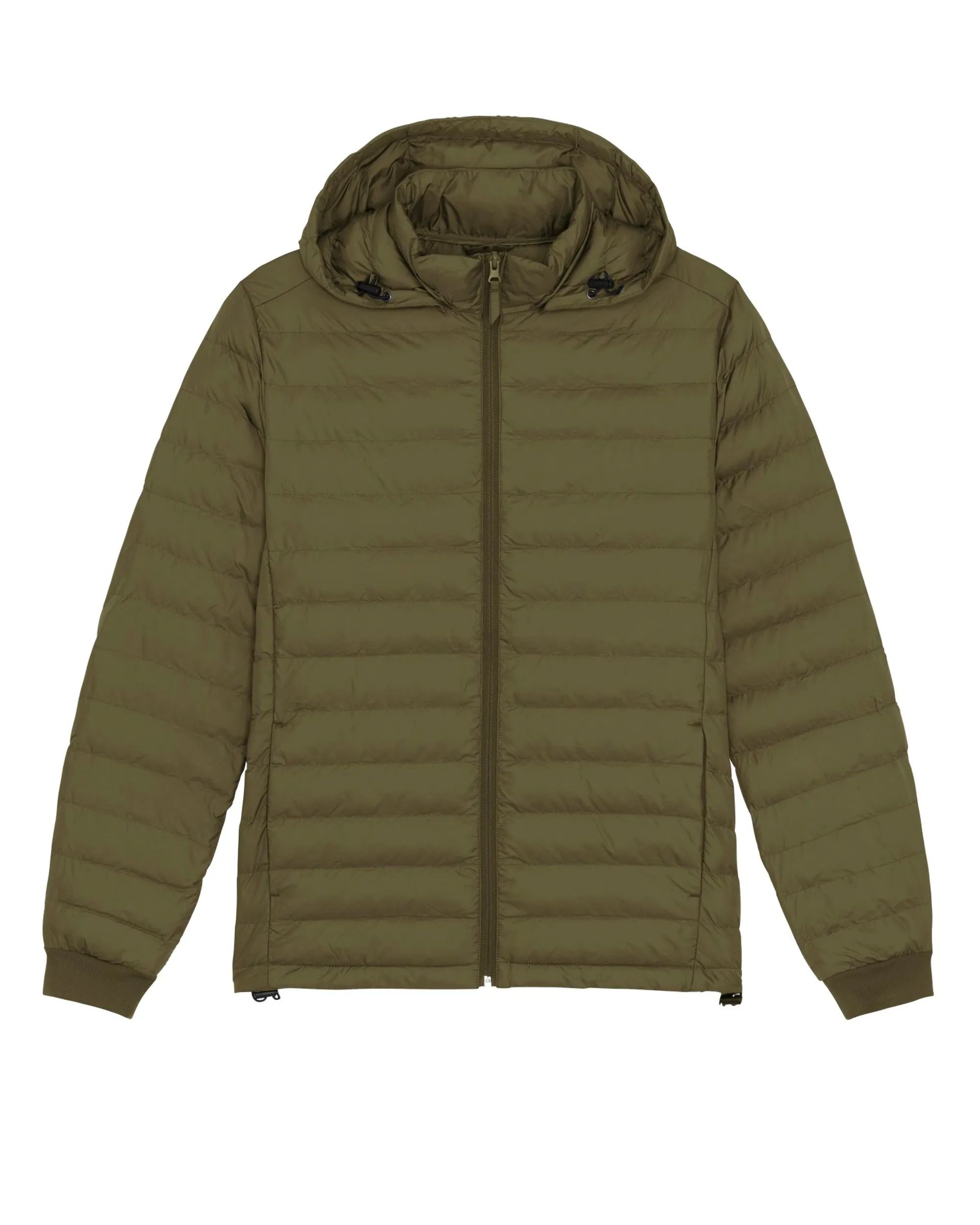 Manches montées Col haut avec capuche amovible grâce à des boutons pressions métalliques mats invisibles Capuche avec arrêt en plastique ajustable et cordon élastique Fermeture éclair inversée en nylon centrée à l’avant Poches passepoilées à fermeture éclair avec tirette extra gros grain Entièrement matelassée Empiècements côtés pour une meilleure coupe Bas des manches en côtes 1x1 Coutures bordées intérieures Bas du corps avec arrêt en plastique ajustable et cordon élastique